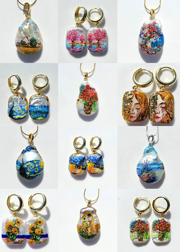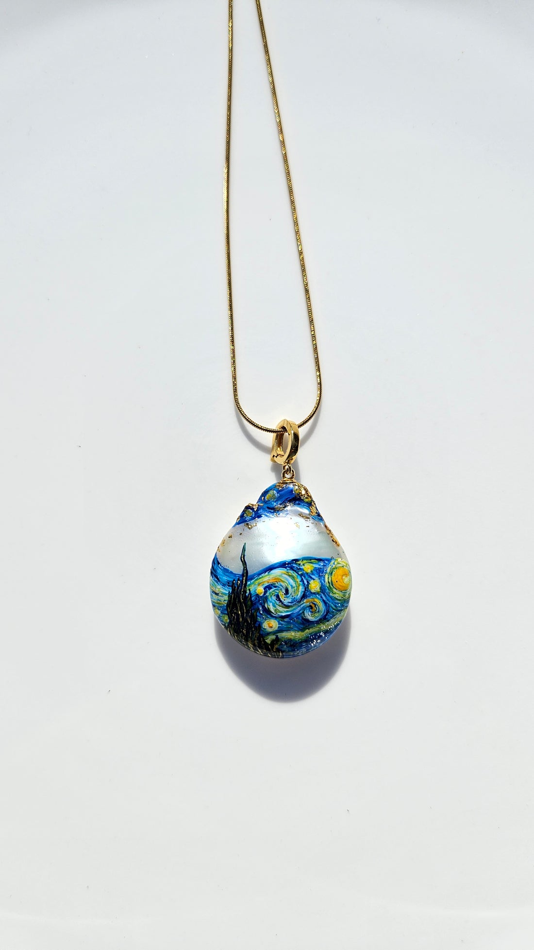 -Hand-painted with Acrylic on a teardrop Baroque pearl. This piece inspired by Van Gogh's iconic...