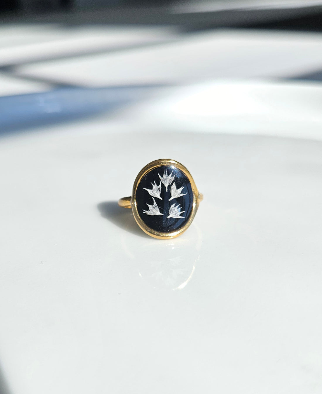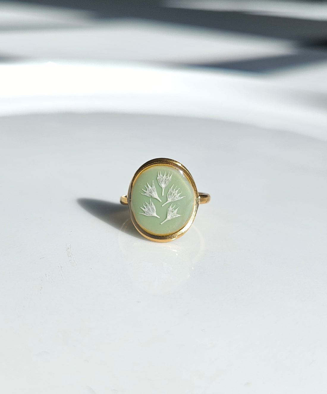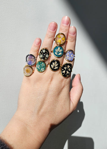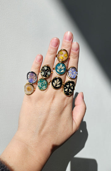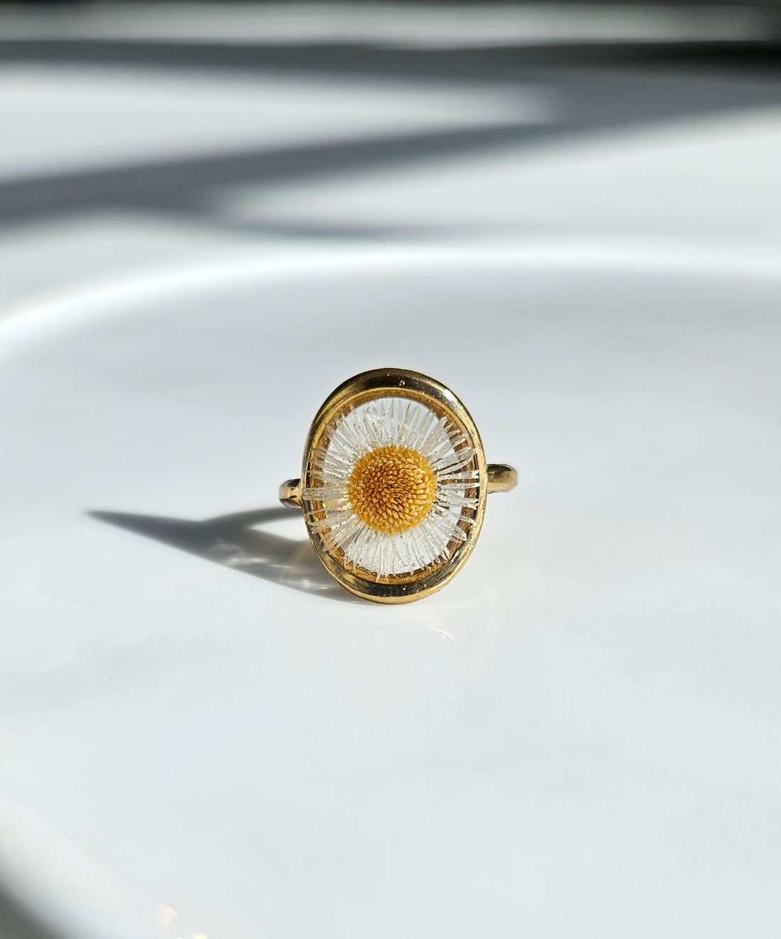 -Real Fleabane set on a gold plated ring setting, preserved in high-quality resin.-Adjustable-Hypoallergenic, nickel and...