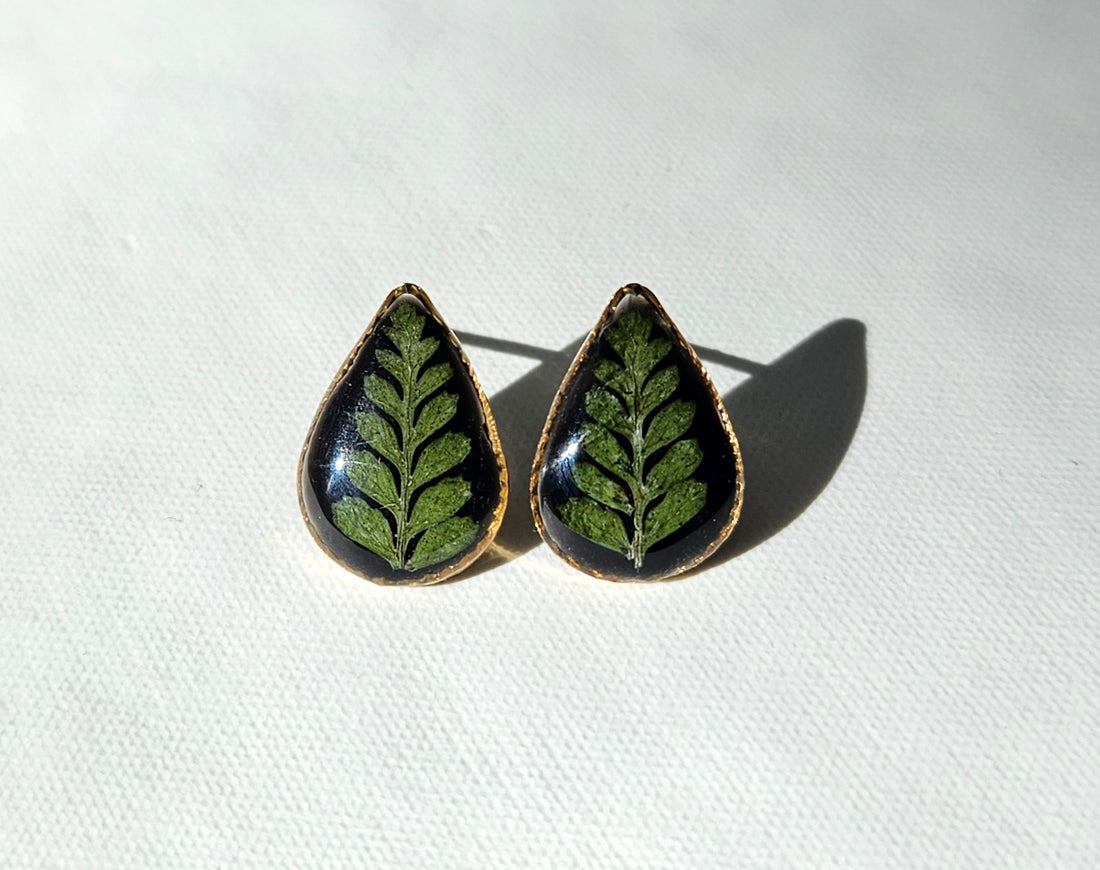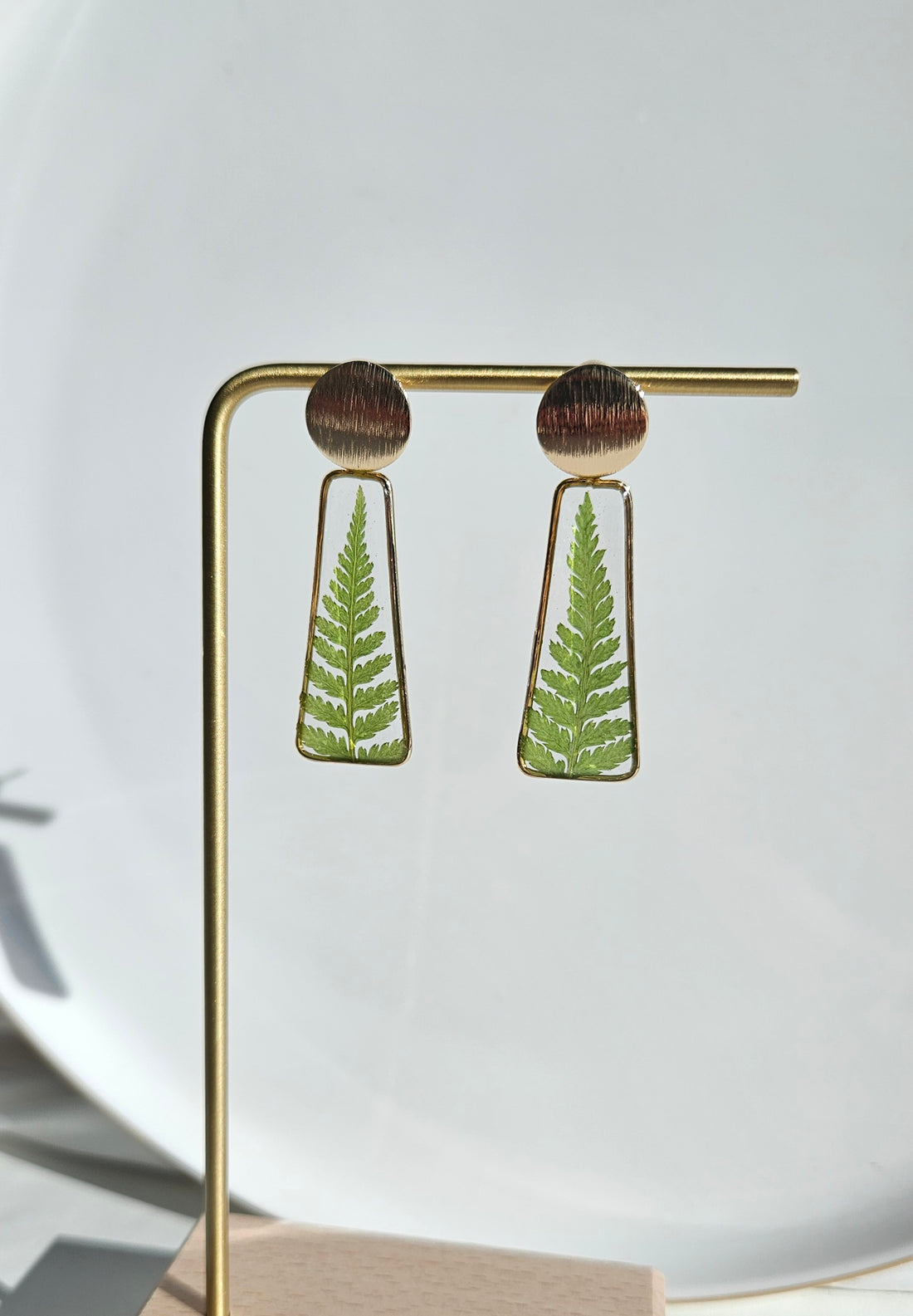 -Real Fern delicately set on gold plated geometrical bezels and preserved in high-quality resin. Finished...