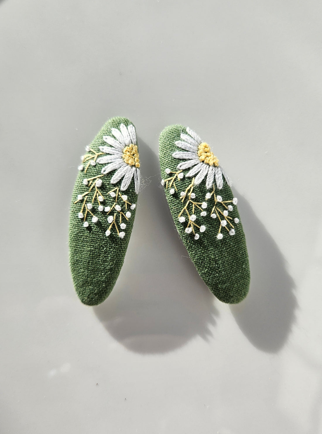 -Each hand embroidered hair barrette is thoughtfully designed with nature-inspired details. They are lightweight, durable,...