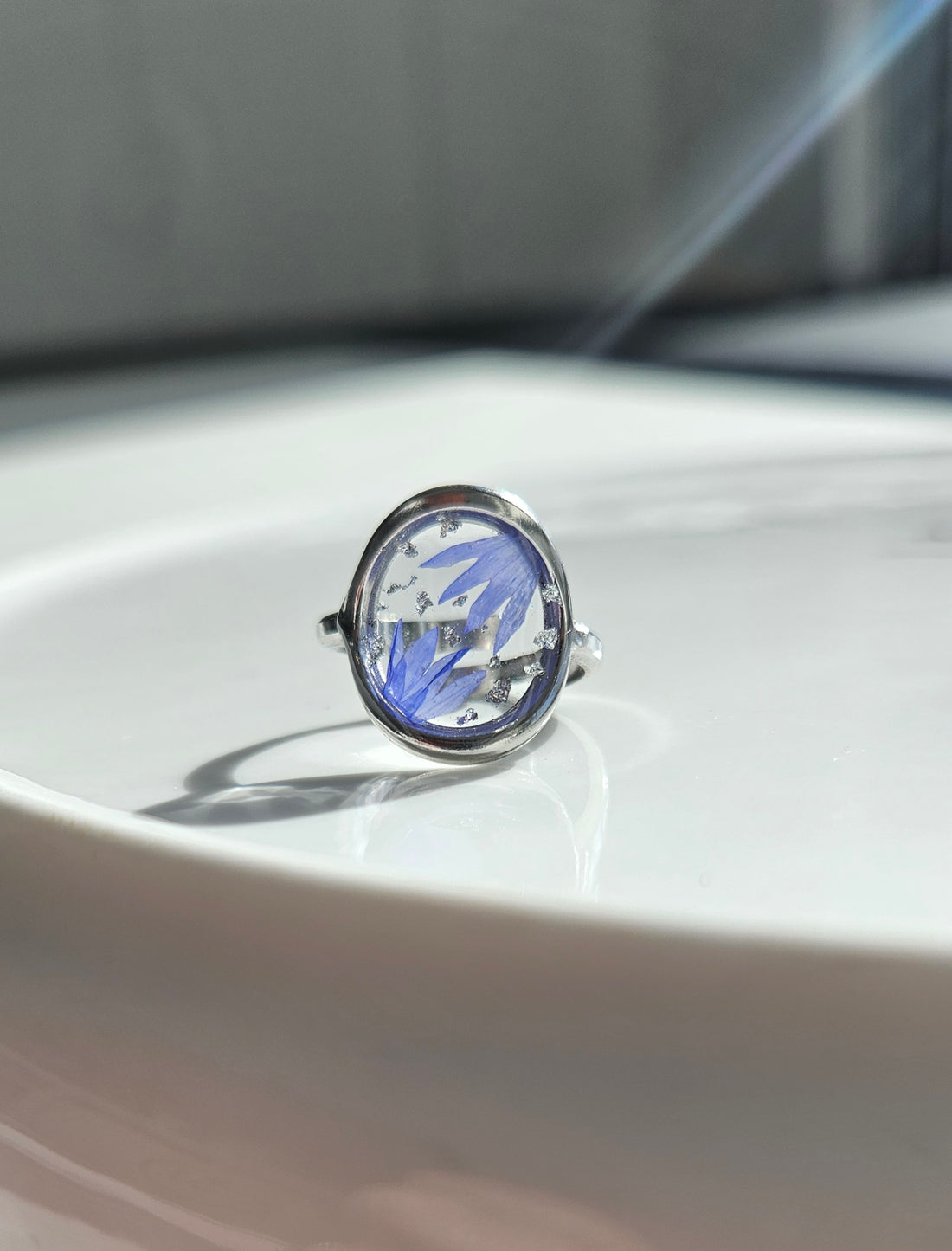 -Real cornflower with silver leaf set on a silver ring setting, preserved in high-quality resin.-Adjustable-Hypoallergenic,...