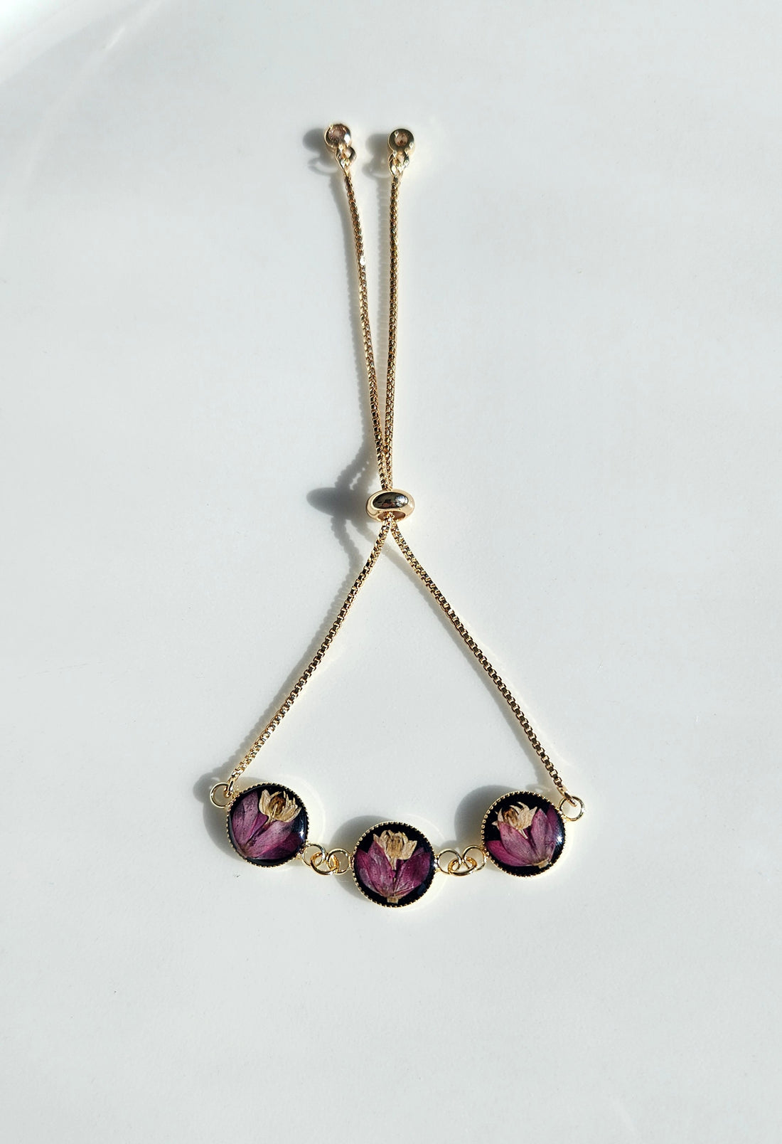 -Real didiscus flower in two different complementary tones, set in heart-shaped gold plated bezels and...