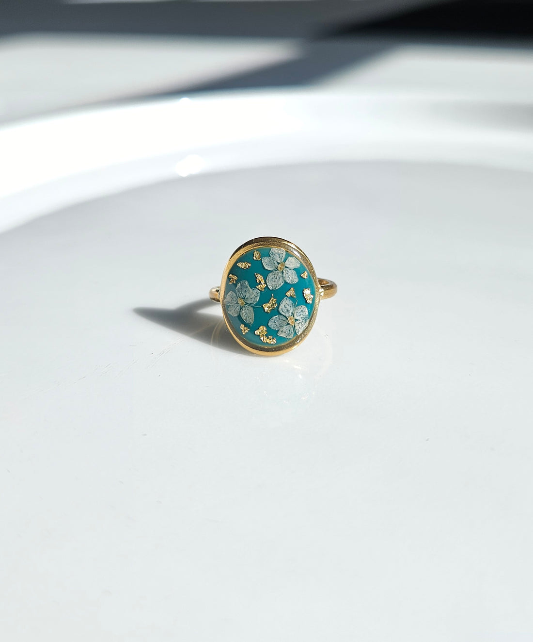 -Real Annabella Hydrangea set on a gold plated ring setting, preserved in high-quality resin.-Adjustable-Hypoallergenic, nickel...