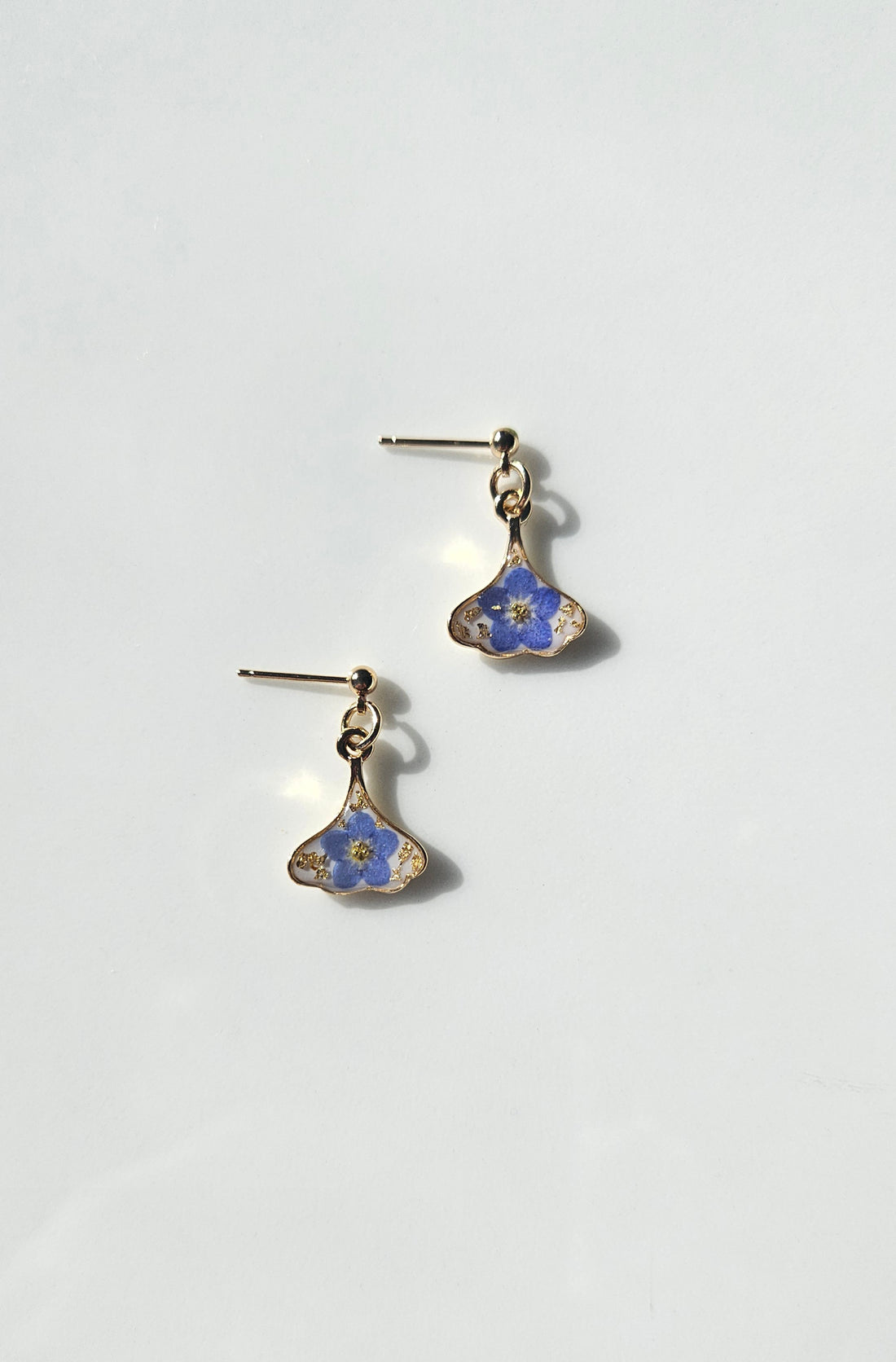 -Real forget me not with buds, accented by gold leaf, preserved in high-quality resin, finished...