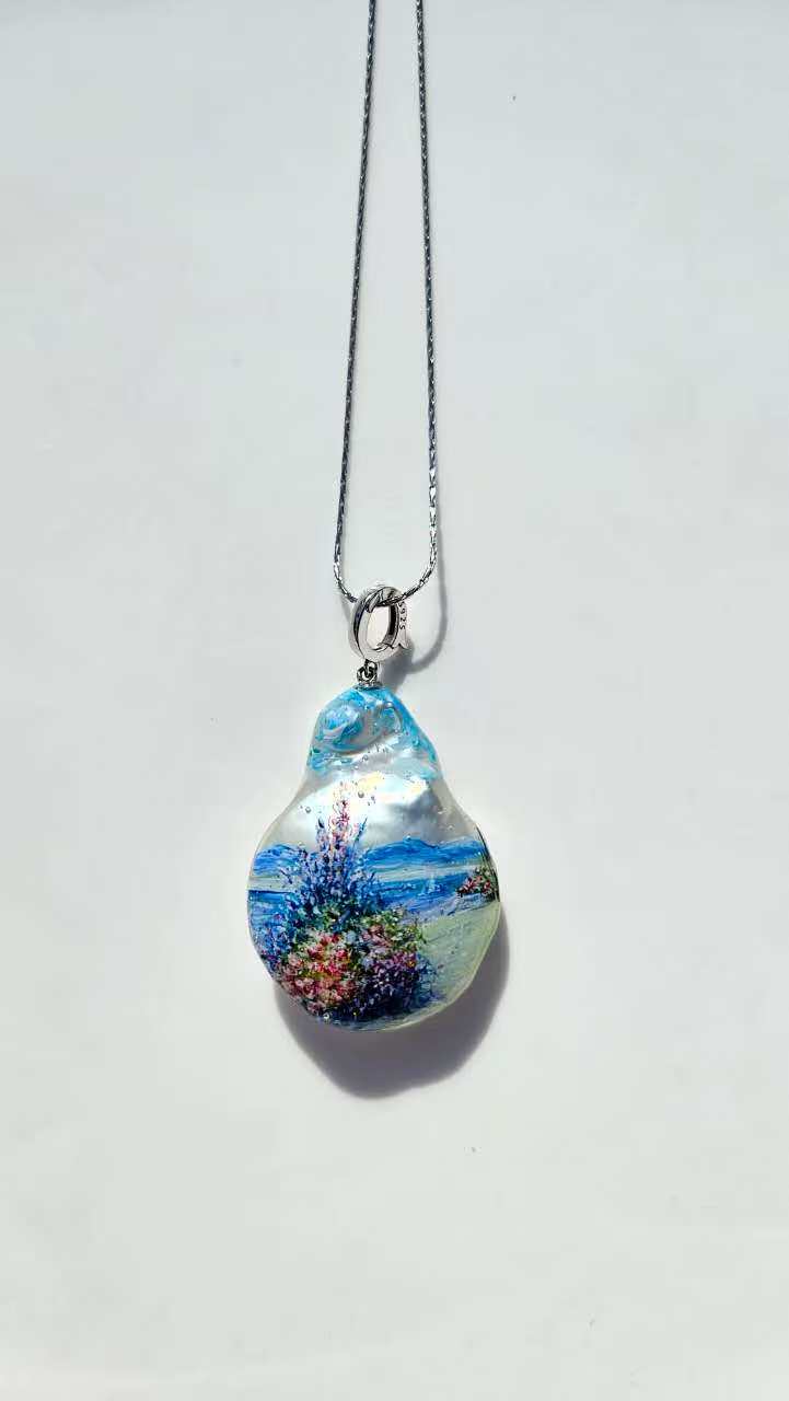 -Hand-painted with Acrylic on a rare, large baroque pearl. This piece draws inspiration from Monet's...