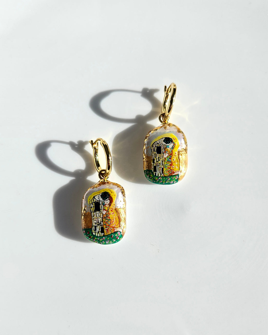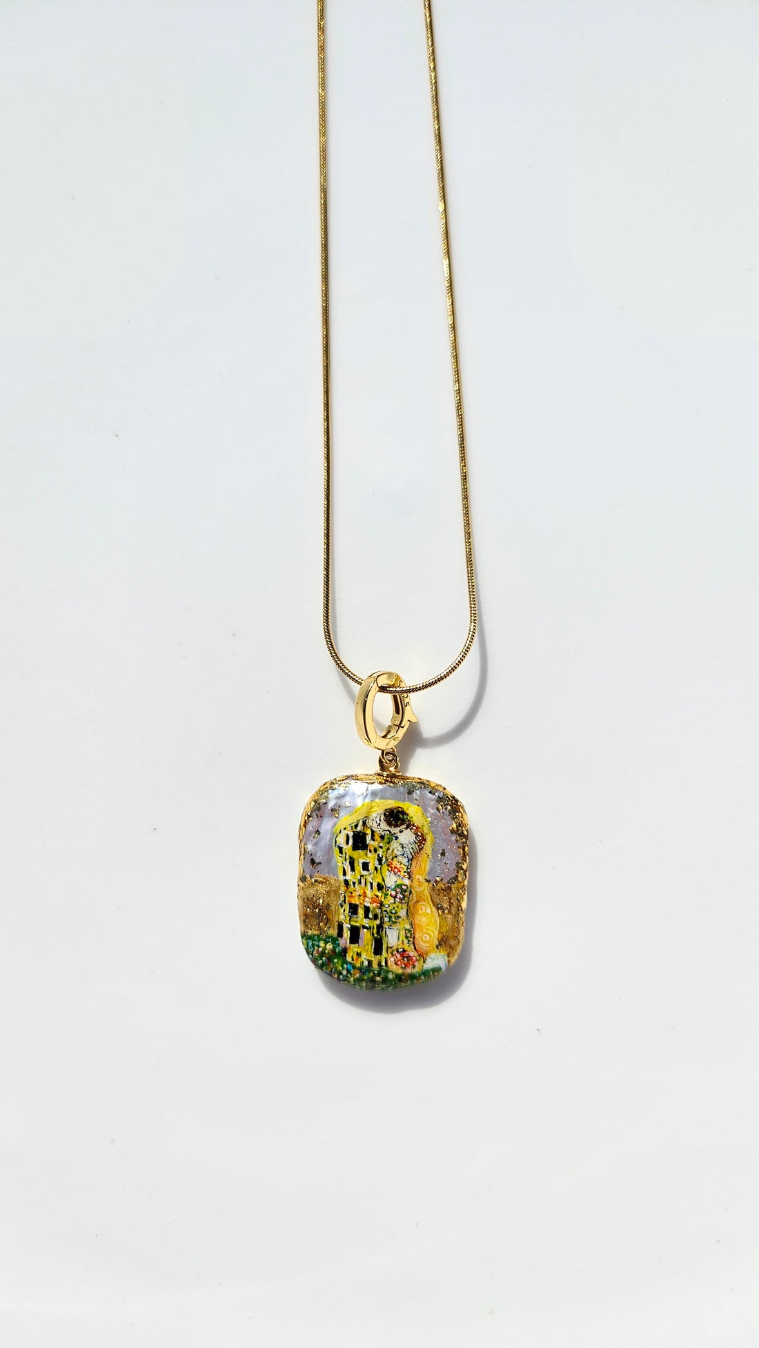 -Hand-painted in acrylic on a rectangular baroque pearl, this piece is inspired by Gustav Klimt’s...