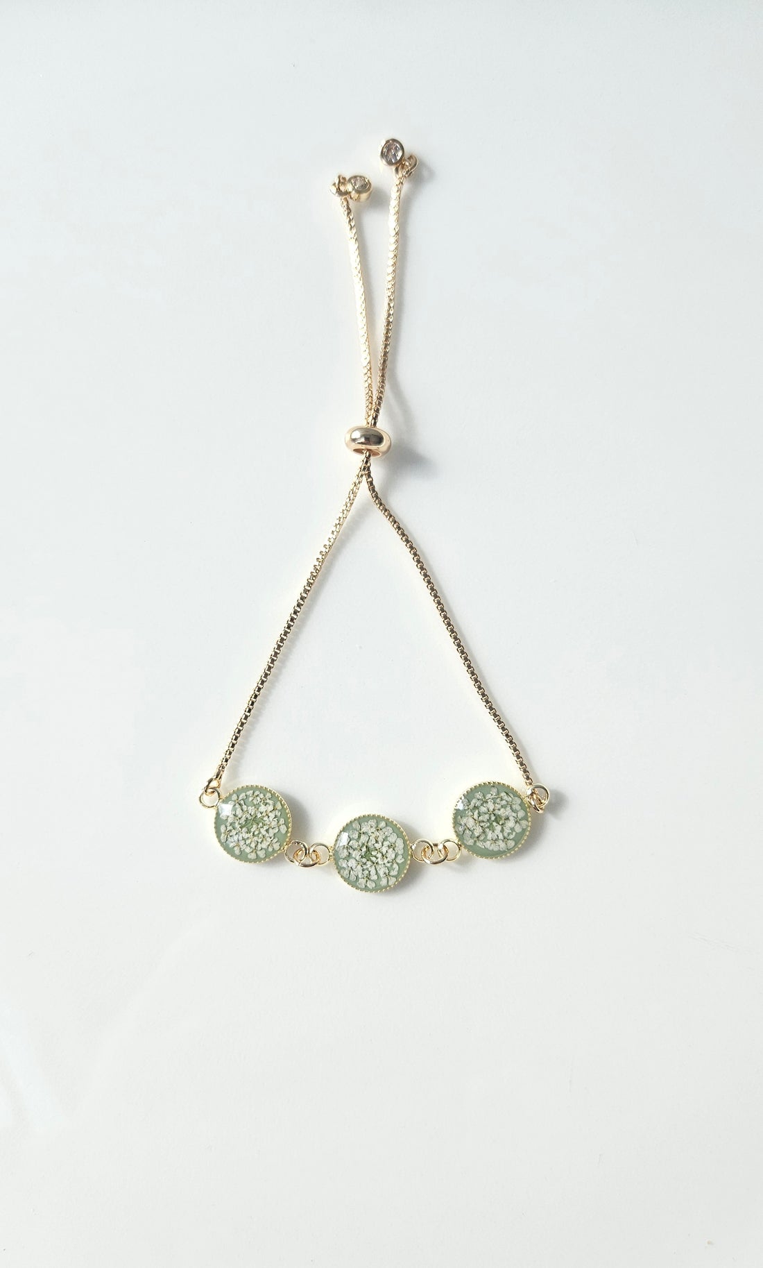 -Real lace flower set against a hand-painted sea foam background, preserved in high-quality resin within...