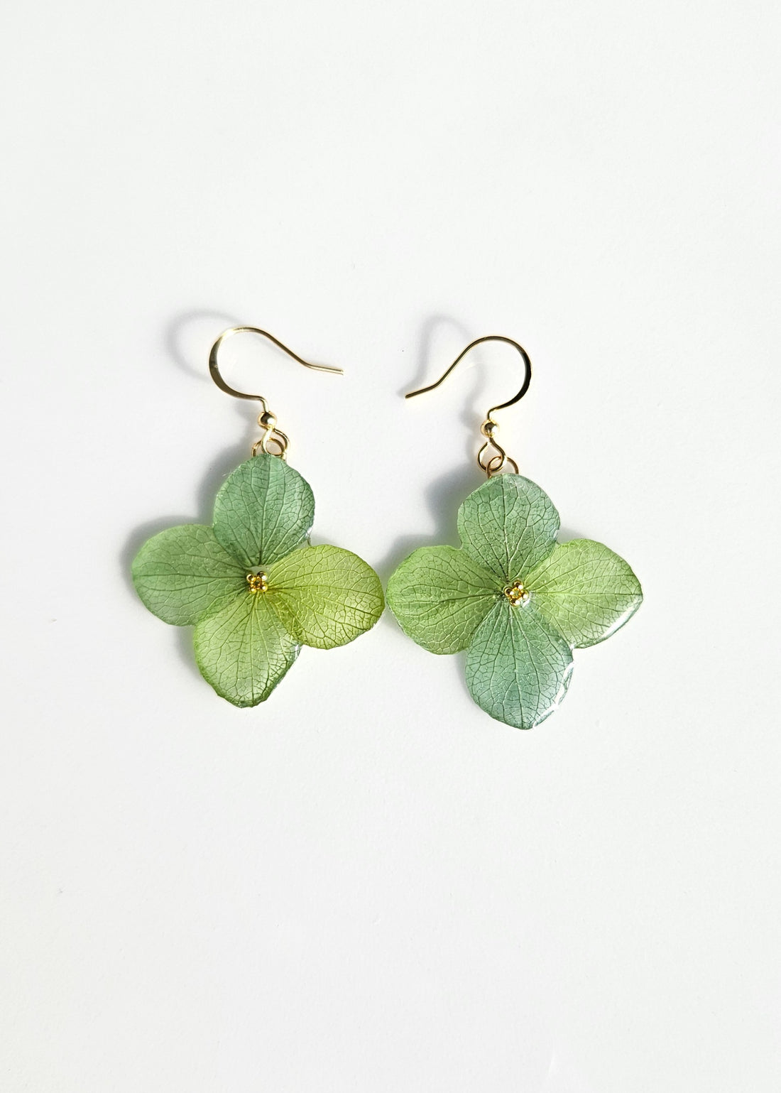 -Real lacecap hydrangea preserved in high-quality resin, finished with gold plated ear wires.-Hypoallergenic, nickel and...