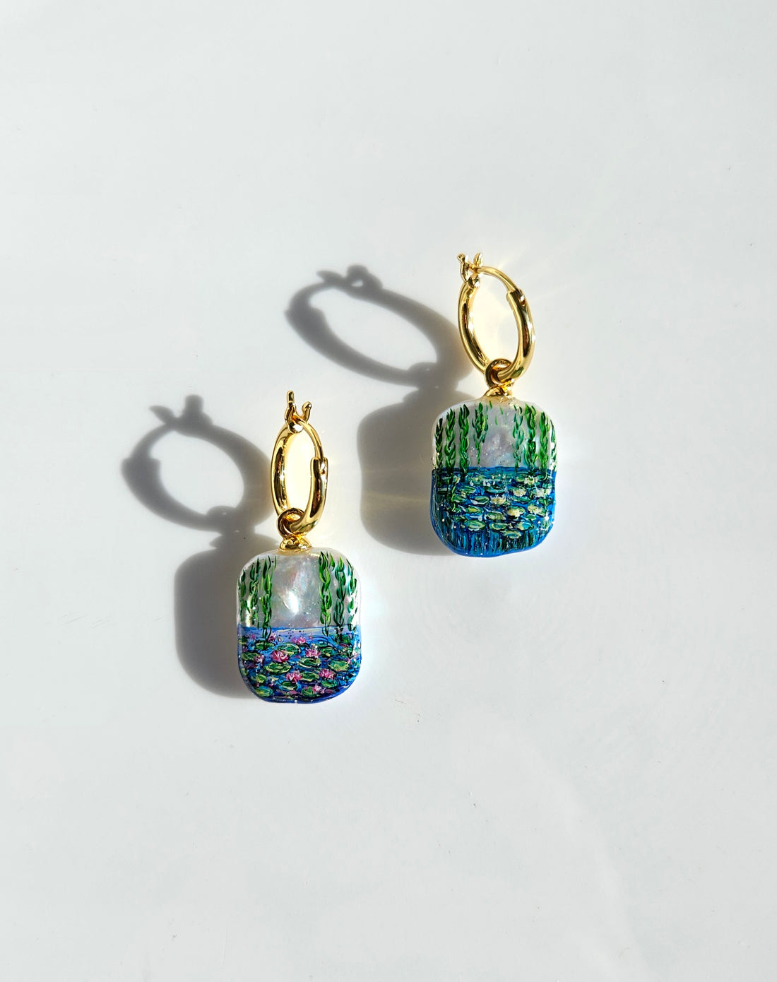 -Hand-painted with acrylic on a rectangular Baroque pearl. This piece is inspired by Monet's iconic...