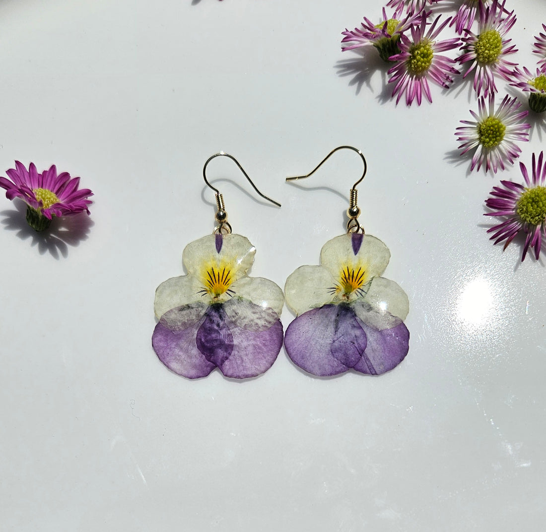 -Real pansy preserved in high-quality resin, finished with gold plated ear wires.-Hypoallergenic, nickel and lead...