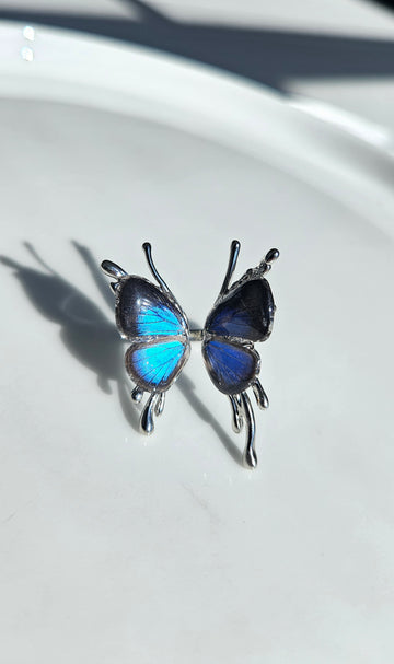 -Handcrafted with ethically sourced Jamides Euchyles, preserved in high-quality resin within silver ring setting.-Adjustable-Hypoallergenic, nickel...